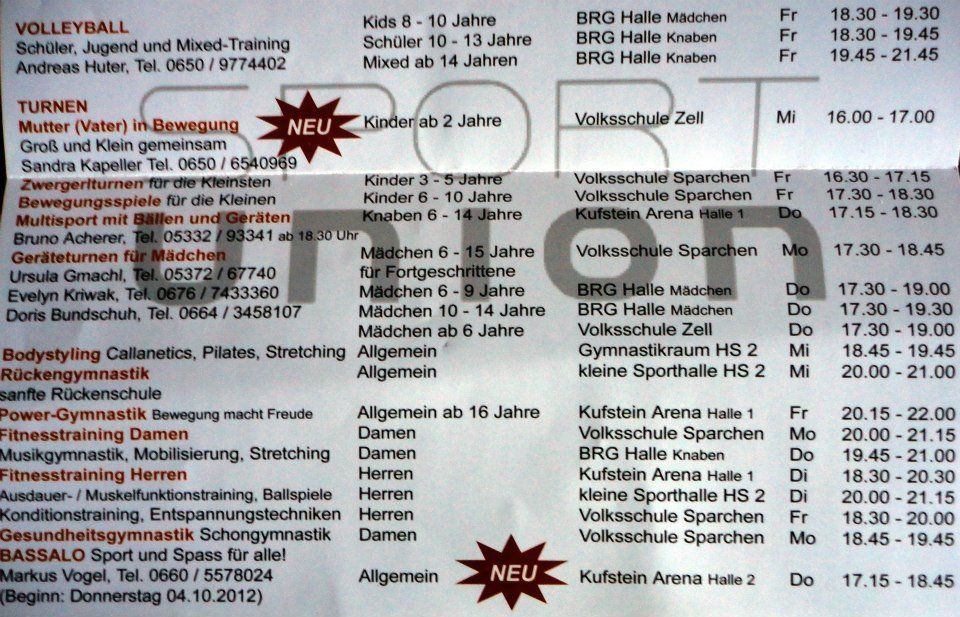 Bassalo ist ab 10.9.2012 im Sportprogramm 2012/13 der Sportunion Sparkasse Kufstein!
